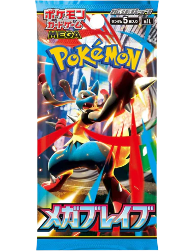 Découvrez le booster Pokémon M1L japonais Mega Brave! Chaque booster contient 5 cartes officielles, avec des chances d’obtenir des cartes rares AR, SR ou SAR.